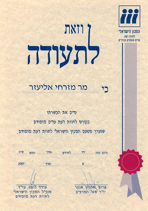 בוגר המכון הישראלי לחוות דעת מומחים ובוררות בהנהלת היו"ר פרופסור דוד ליבאי.